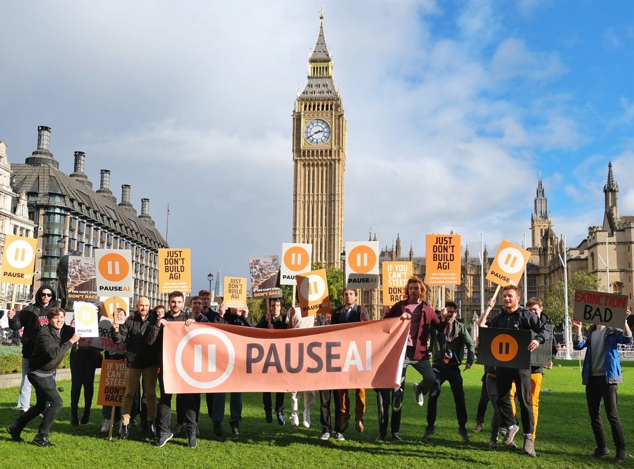 Vi uppmanar till ett förbud mot utvecklingen av superintelligens, som inte hÀvs förrÀn det finns bred vetenskaplig konsensus om att det kan göras sÀkert och kontrollerbart, och ett starkt offentligt stöd